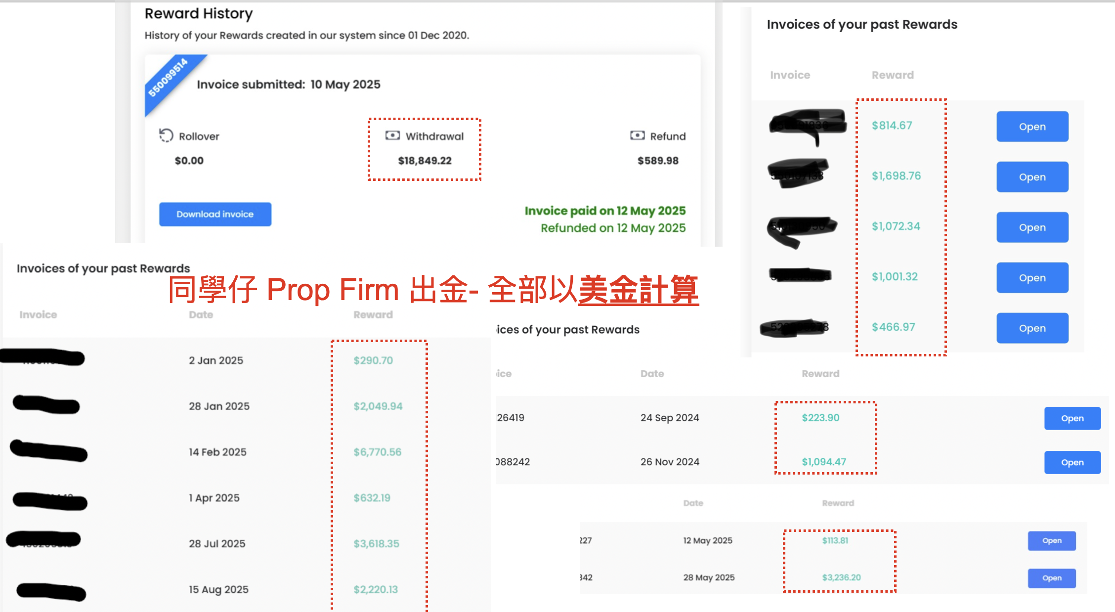 不良的Prop Firm 公司是會有這種情況的. 所以只用龍頭的Prop Firm公司例如 FTMO , 5%er 等等 我們沒有試過任何贏錢不出金的情況. 可以看下面我們的同學穩定出金紀錄…有圖 有QR Code. 過數紀錄等等: