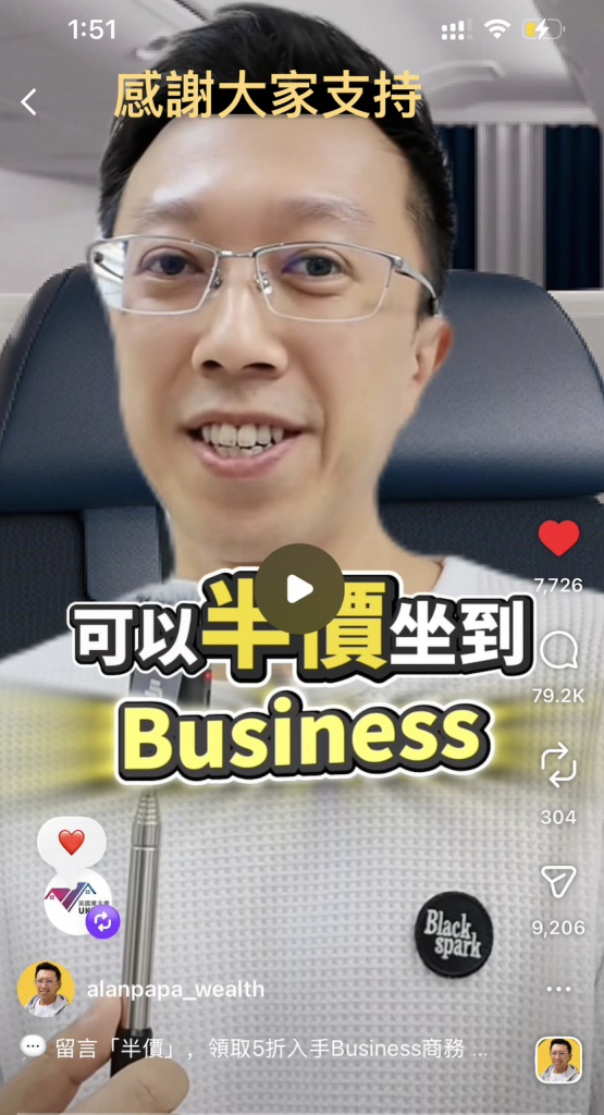 首先多謝上一條 Reels “如何半價買BusinessClass機票” 大家都非常 LIKE. 先感謝大家!